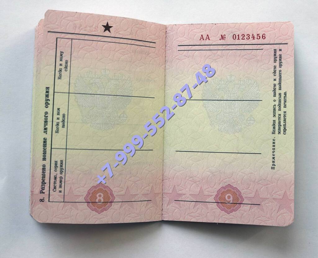 Разрешение на ношение оружия.
